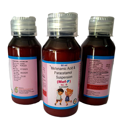 | Mefenaminc Acid 100 mg+ Paracetamol 250 mg Suspension | 100 x 60 ML | with label | 78.00 |